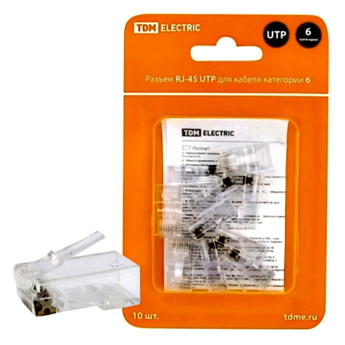 Разъем RJ-45 UTP для кабеля кат. 5Е, 8P8C в блистере (10шт) TDM SQ0561-0006