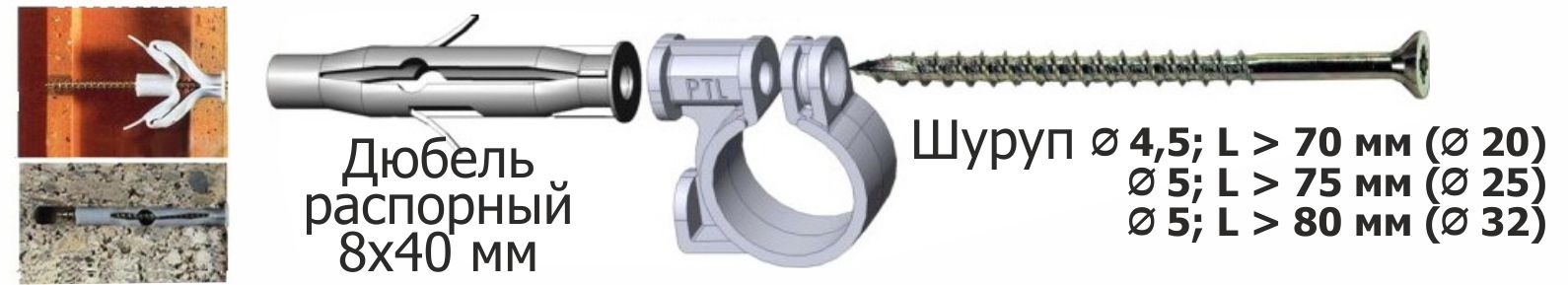 Способы крепления к конструкциям из различных материалов (рекомендуемые крепежные изделия)
