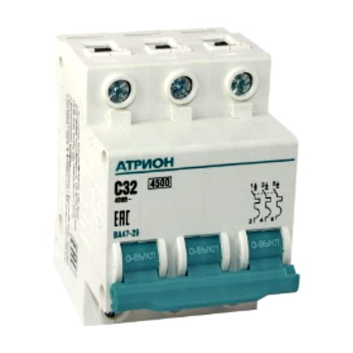 Выключатель автоматический ВА47-29, 3Р, 4,5кА, 32А, хар.С АТРИОН ( VA4729-3-32C )